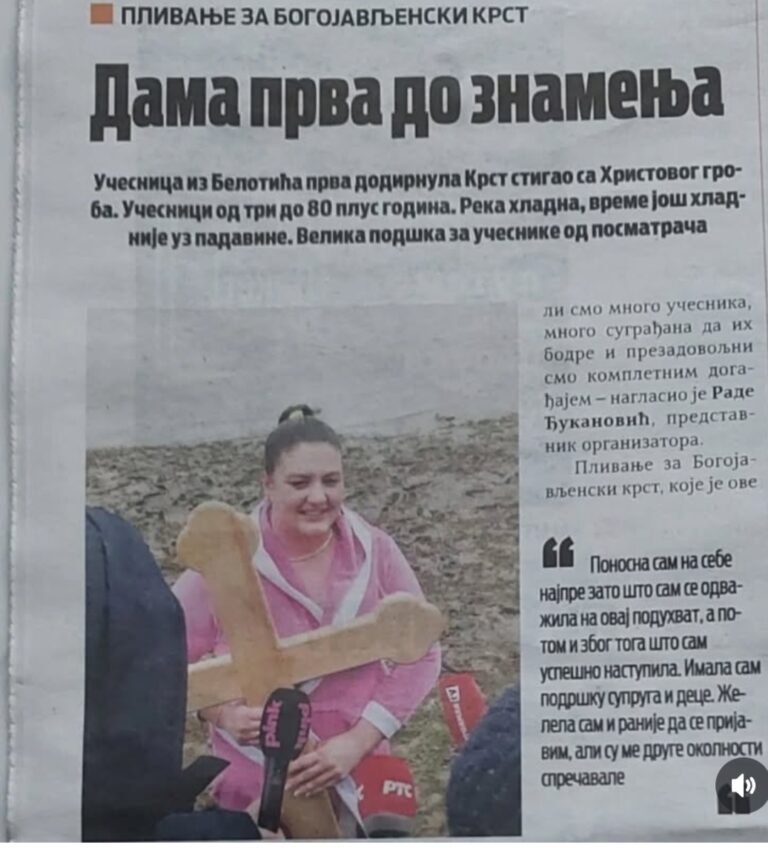 У овом интервјуу нећемо говорити само о води и крсту – већ о ономе што ту воду носимо у себи, и о томе зашто понекад треба заронити дубоко у себе да бисмо испливали као бољи људи. Кроз њене искрене одговоре открићемо шта за њу значи честитост, како изгледа свакодневна борба мајке, и зашто верује да је снага жене управо у њеној нежности.